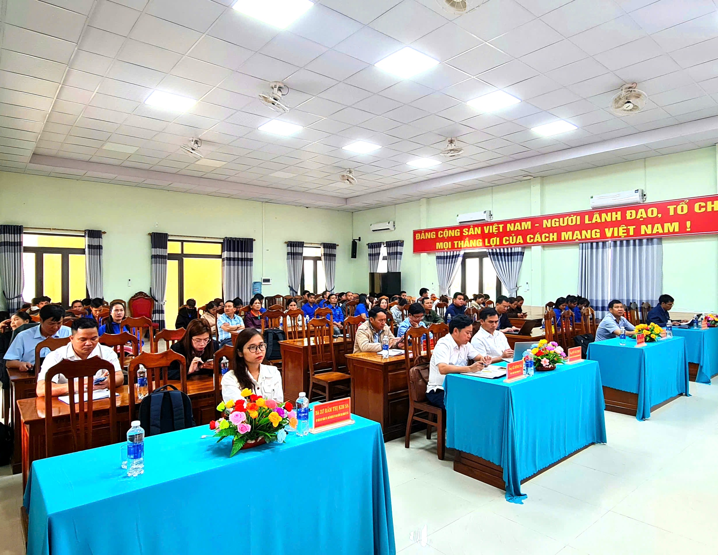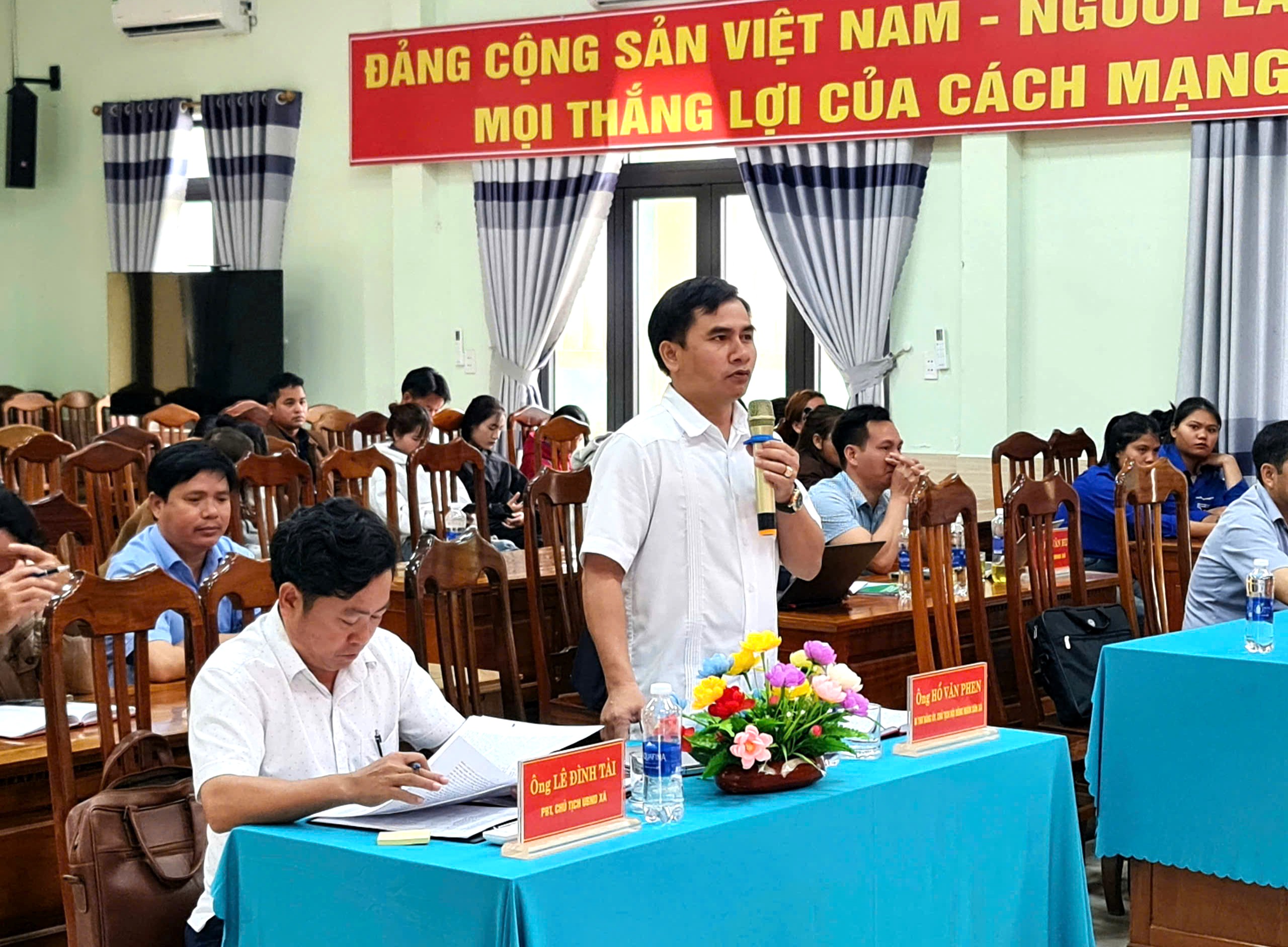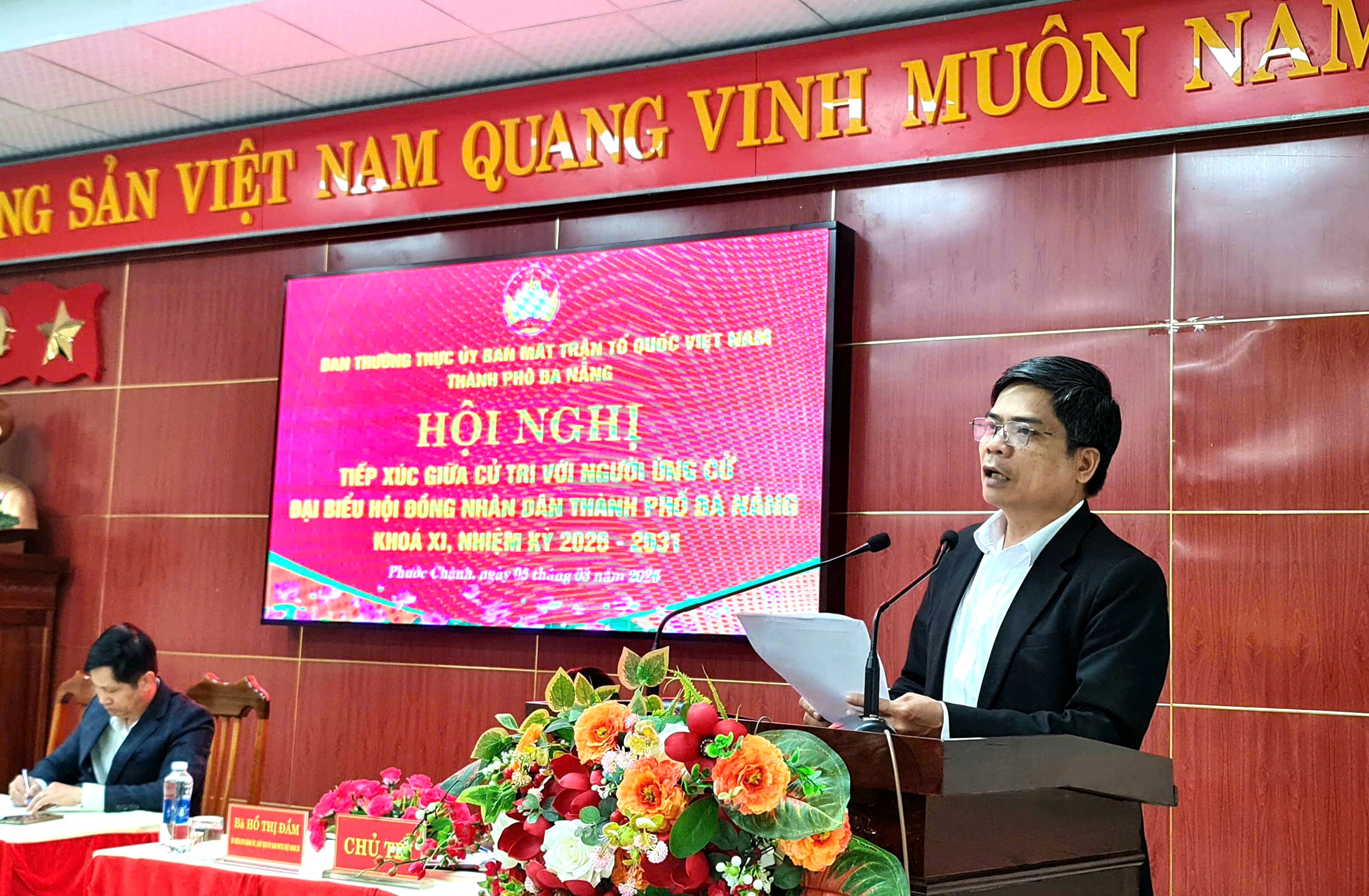 Tham dự hội nghị có các ứng cử viên gồm: ông Đoàn Ngọc Chung – Giám đốc Chi nhánh Ngân hàng Chính sách xã hội TP.Đà Nẵng; ông Đoàn Văn Thông – Bí thư Đảng ủy, Chủ tịch HĐND xã Khâm Đức; bà Nguyễn Thị Như Trang – Chuyên viên Chi nhánh Ngân hàng Chính sách xã hội TP.Đà Nẵng cùng đông đảo cử tri trên địa bàn xã.