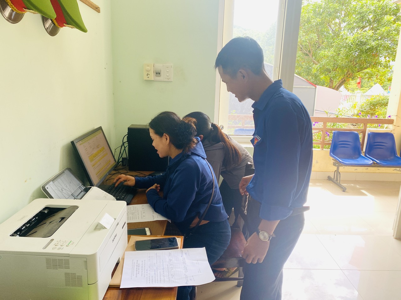 Nhằm phát huy tinh thần xung kích, tình nguyện của tuổi trẻ trong công cuộc chuyển đổi số, Đoàn Thanh niên xã tiếp tục duy trì đội hình thanh niên tình nguyện hỗ trợ người dân sử dụng dịch vụ công trực tuyến quốc gia tại UBND xã.